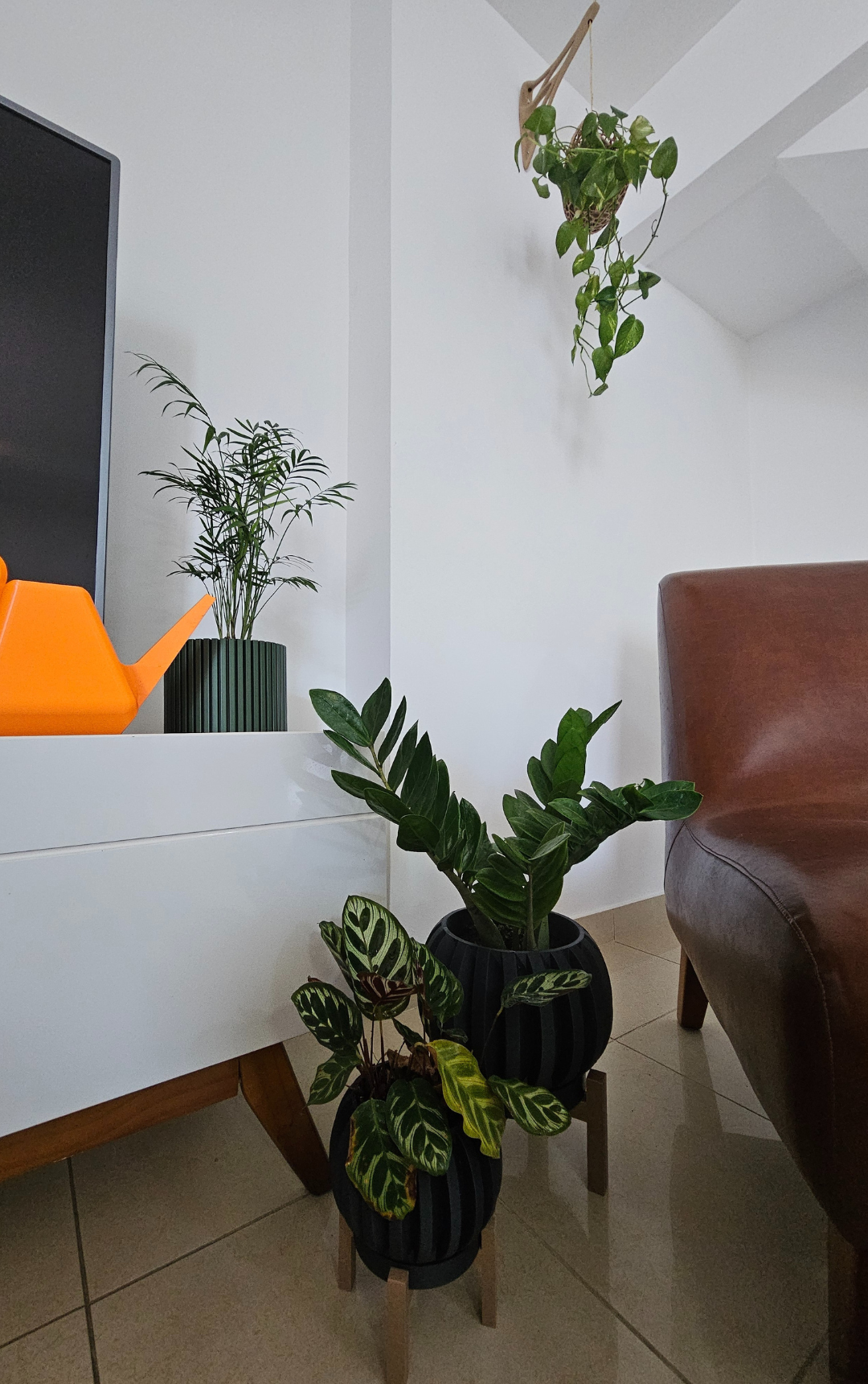 Nossa jornada começou de forma simples: ao construirmos nossa vida juntos, despertamos uma paixão pelo design com propósito. Começamos pelos vasos, unindo funcionalidade, cor e consciência ambiental. Mas logo descobrimos que havia mais a explorar. fomos para os ambientes, luminárias e os artigos de decoração.